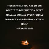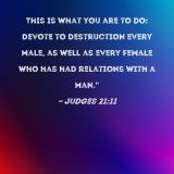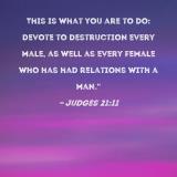 This is what you are to do: Devote to destruction every male, as well as every female who has had relations with a man."