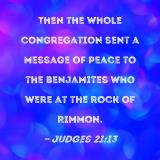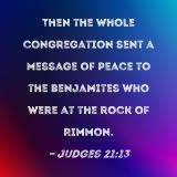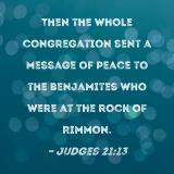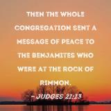 Then the whole congregation sent a message of peace to the Benjamites who were at the rock of Rimmon.
