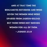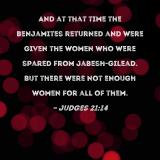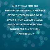 And at that time the Benjamites returned and were given the women who were spared from Jabesh-gilead. But there were not enough women for all of them.