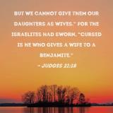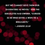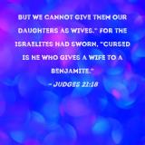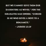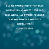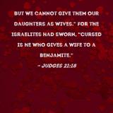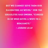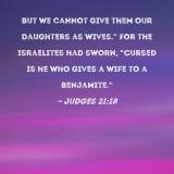 But we cannot give them our daughters as wives." For the Israelites had sworn, "Cursed is he who gives a wife to a Benjamite."