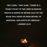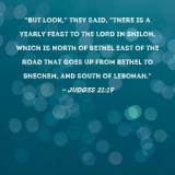"But look," they said, "there is a yearly feast to the LORD in Shiloh, which is north of Bethel east of the road that goes up from Bethel to Shechem, and south of Lebonah."
