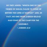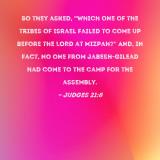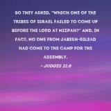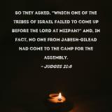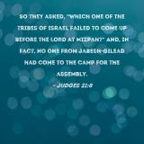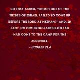 So they asked, "Which one of the tribes of Israel failed to come up before the LORD at Mizpah?" And, in fact, no one from Jabesh-gilead had come to the camp for the assembly.