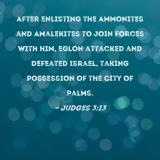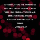 After enlisting the Ammonites and Amalekites to join forces with him, Eglon attacked and defeated Israel, taking possession of the City of Palms.