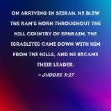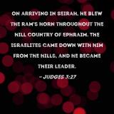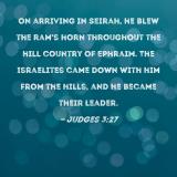 On arriving in Seirah, he blew the ram's horn throughout the hill country of Ephraim. The Israelites came down with him from the hills, and he became their leader.