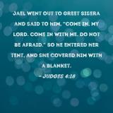 Jael went out to greet Sisera and said to him, "Come in, my lord. Come in with me. Do not be afraid." So he entered her tent, and she covered him with a blanket.