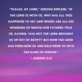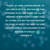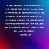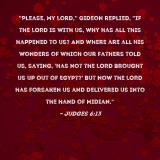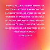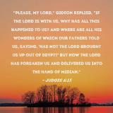 Pictures and Artwork "Please, my Lord," Gideon replied, "if the LORD is with us, why has all this happened to us? And where are all His wonders of which our fathers told us, saying, 'Has not the LORD brought us up out of Egypt?' But now the LORD has forsaken us and delivered us into the hand of Midian." |