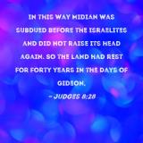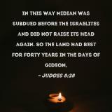 In this way Midian was subdued before the Israelites and did not raise its head again. So the land had rest for forty years in the days of Gideon,