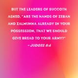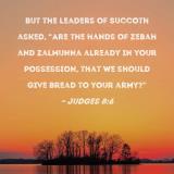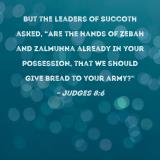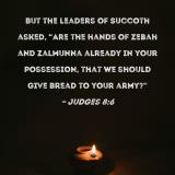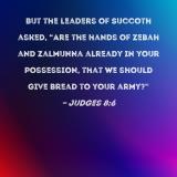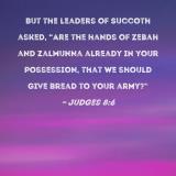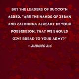But the leaders of Succoth asked, "Are the hands of Zebah and Zalmunna already in your possession, that we should give bread to your army?"