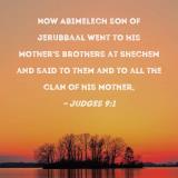 Now Abimelech son of Jerubbaal went to his mother's brothers at Shechem and said to them and to all the clan of his mother,