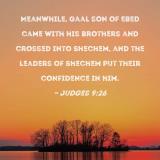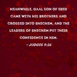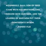 Meanwhile, Gaal son of Ebed came with his brothers and crossed into Shechem, and the leaders of Shechem put their confidence in him.