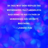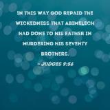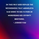 In this way God repaid the wickedness that Abimelech had done to his father in murdering his seventy brothers.