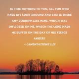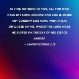 Is this nothing to you, all you who pass by? Look around and see! Is there any sorrow like mine, which was inflicted on me, which the LORD made me suffer on the day of His fierce anger?