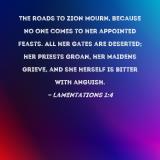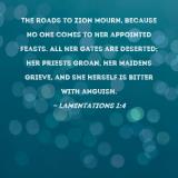 The roads to Zion mourn, because no one comes to her appointed feasts. All her gates are deserted; her priests groan, her maidens grieve, and she herself is bitter with anguish.