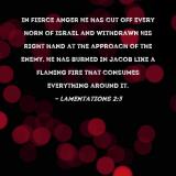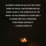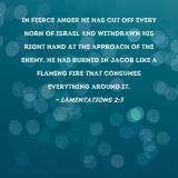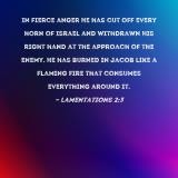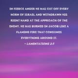 In fierce anger He has cut off every horn of Israel and withdrawn His right hand at the approach of the enemy. He has burned in Jacob like a flaming fire that consumes everything around it.