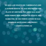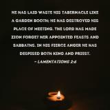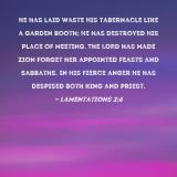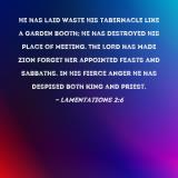 He has laid waste His tabernacle like a garden booth; He has destroyed His place of meeting. The LORD has made Zion forget her appointed feasts and Sabbaths. In His fierce anger He has despised both king and priest.