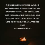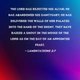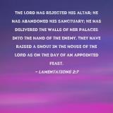 The Lord has rejected His altar; He has abandoned His sanctuary; He has delivered the walls of her palaces into the hand of the enemy. They have raised a shout in the house of the LORD as on the day of an appointed feast.