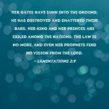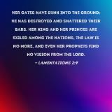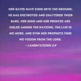 Her gates have sunk into the ground; He has destroyed and shattered their bars. Her king and her princes are exiled among the nations, the law is no more, and even her prophets find no vision from the LORD.