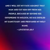 And I will set My face against that man and cut him off from his people, because by giving his offspring to Molech, he has defiled My sanctuary and profaned My holy name.