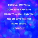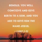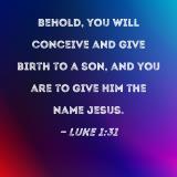 Behold, you will conceive and give birth to a son, and you are to give Him the name Jesus.