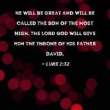 He will be great and will be called the Son of the Most High. The Lord God will give Him the throne of His father David,