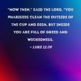 "Now then," said the Lord, "you Pharisees clean the outside of the cup and dish, but inside you are full of greed and wickedness.