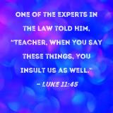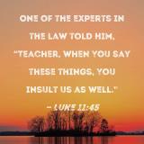 One of the experts in the law told Him, "Teacher, when You say these things, You insult us as well."