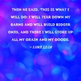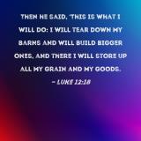 Then he said, 'This is what I will do: I will tear down my barns and will build bigger ones, and there I will store up all my grain and my goods.