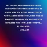 But the one who unknowingly does things worthy of punishment will be beaten with few blows. From everyone who has been given much, much will be required; and from him who has been entrusted with much, even more will be demanded.