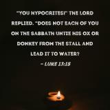 "You hypocrites!" the Lord replied, "Does not each of you on the Sabbath untie his ox or donkey from the stall and lead it to water?