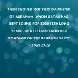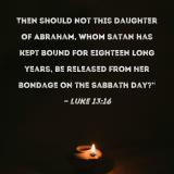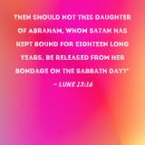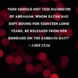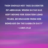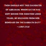 Then should not this daughter of Abraham, whom Satan has kept bound for eighteen long years, be released from her bondage on the Sabbath day?"