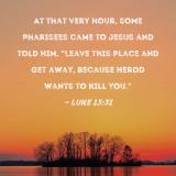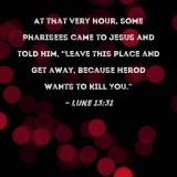 At that very hour, some Pharisees came to Jesus and told Him, "Leave this place and get away, because Herod wants to kill You."
