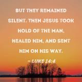 But they remained silent. Then Jesus took hold of the man, healed him, and sent him on his way.