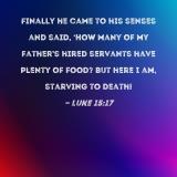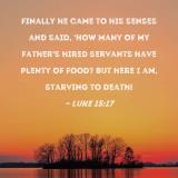 Finally he came to his senses and said, 'How many of my father's hired servants have plenty of food? But here I am, starving to death!