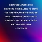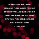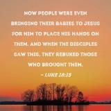 Now people were even bringing their babies to Jesus for Him to place His hands on them. And when the disciples saw this, they rebuked those who brought them.