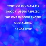 "Why do you call Me good?" Jesus replied. "No one is good except God alone.