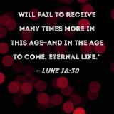 will fail to receive many times more in this age--and in the age to come, eternal life."