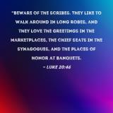 "Beware of the scribes. They like to walk around in long robes, and they love the greetings in the marketplaces, the chief seats in the synagogues, and the places of honor at banquets.