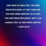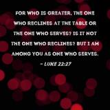 For who is greater, the one who reclines at the table or the one who serves? Is it not the one who reclines? But I am among you as one who serves.