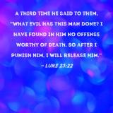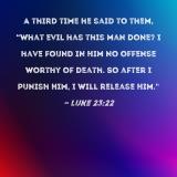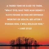 A third time he said to them, "What evil has this man done? I have found in Him no offense worthy of death. So after I punish Him, I will release Him."