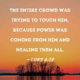 The entire crowd was trying to touch Him, because power was coming from Him and healing them all.