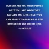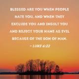 Blessed are you when people hate you, and when they exclude you and insult you and reject your name as evil because of the Son of Man.