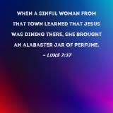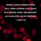 When a sinful woman from that town learned that Jesus was dining there, she brought an alabaster jar of perfume.