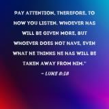 Pay attention, therefore, to how you listen. Whoever has will be given more, but whoever does not have, even what he thinks he has will be taken away from him."