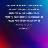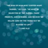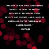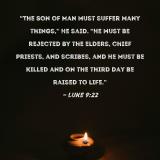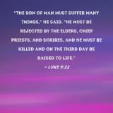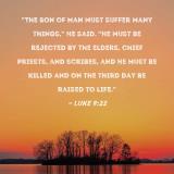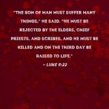 "The Son of Man must suffer many things," He said. "He must be rejected by the elders, chief priests, and scribes, and He must be killed and on the third day be raised to life."