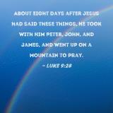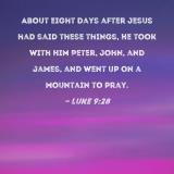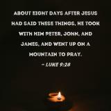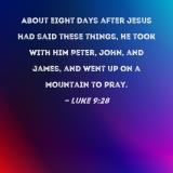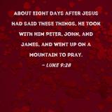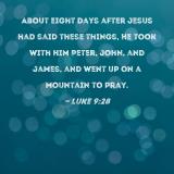 About eight days after Jesus had said these things, He took with Him Peter, John, and James, and went up on a mountain to pray.