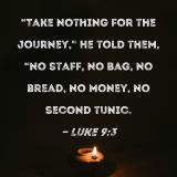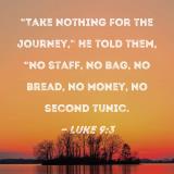 "Take nothing for the journey," He told them, "no staff, no bag, no bread, no money, no second tunic.