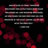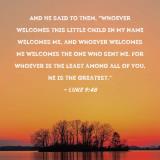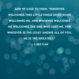 And He said to them, "Whoever welcomes this little child in My name welcomes Me, and whoever welcomes Me welcomes the One who sent Me. For whoever is the least among all of you, he is the greatest."