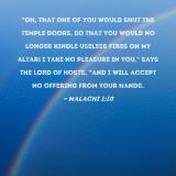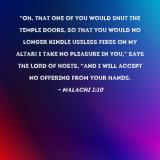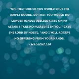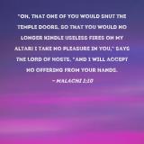 "Oh, that one of you would shut the temple doors, so that you would no longer kindle useless fires on My altar! I take no pleasure in you," says the LORD of Hosts, "and I will accept no offering from your hands.