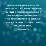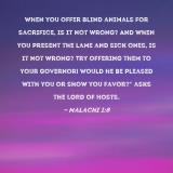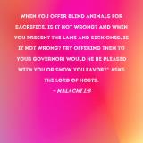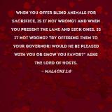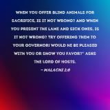 Pictures and Artwork When you offer blind animals for sacrifice, is it not wrong? And when you present the lame and sick ones, is it not wrong? Try offering them to your governor! Would he be pleased with you or show you favor?" asks the LORD of Hosts. |