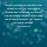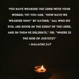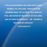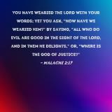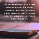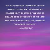 You have wearied the LORD with your words; yet you ask, "How have we wearied Him?" By saying, "All who do evil are good in the sight of the LORD, and in them He delights," or, "Where is the God of justice?"